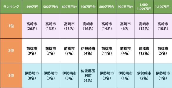 ・年収帯を問わず、栃木県は「宇都宮市」、群馬県は「高崎市」に人気が集中