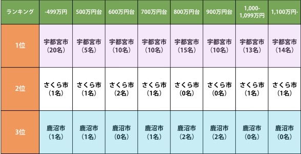 【栃木県・群馬県】:世帯年収別の”住みたいエリア” ランキング